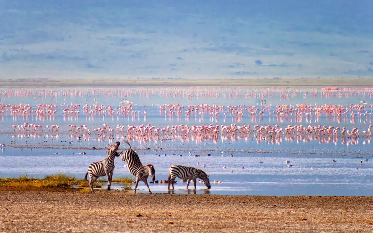 Very little wildlife can exist here during the harsh dry season of strong hot winds and only salt water, but following a rain the pan becomes an important habitat for migrating animals including wildebeest and one of Africa’s biggest zebra populations, and the large predators that prey on them. The wet season also brings migratory birds such as ducks, geese and great white pelicans.