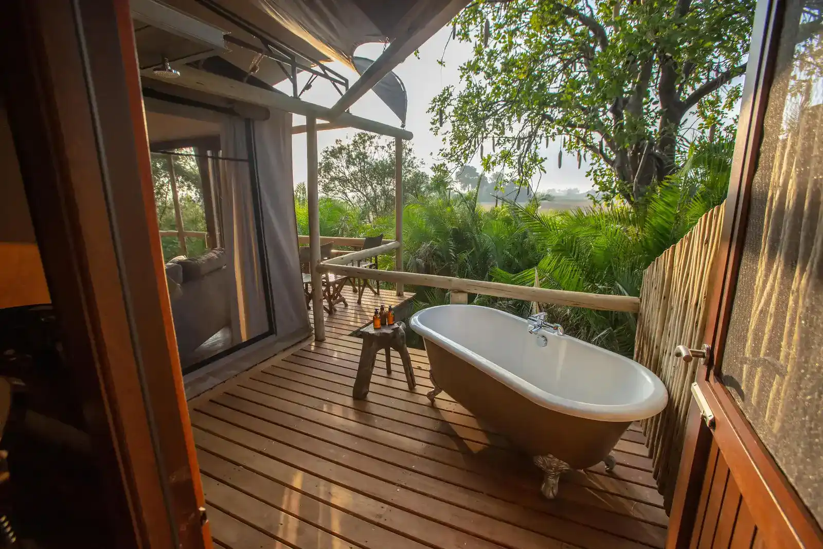 Surrounded by seasonally inundated floodplains and papyrus swamps, this attractive camp is built on raised wooden decks to maximise the glorious views over the ever-changing landscape. Marvel at the birding in this area; look forward to close encounters with aquatic specialists like African jacana, aptly nicknamed lily trotters. Embark on game drives in the summer months (Sept – April) after the delta flood waters have receded, scanning for lion, wild dog, and elusive leopard.
